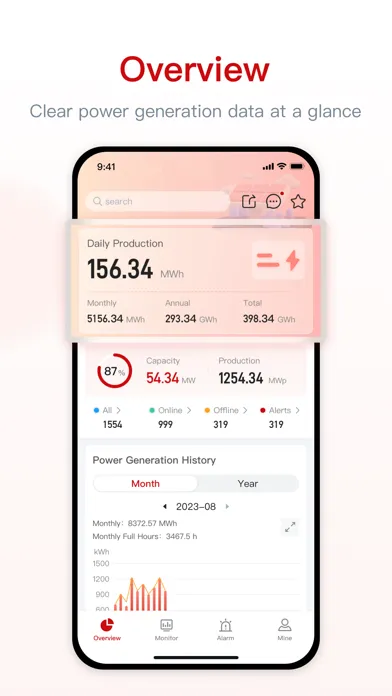 You can view the daily power generation of the power plant online and check if the equipment is alerting.