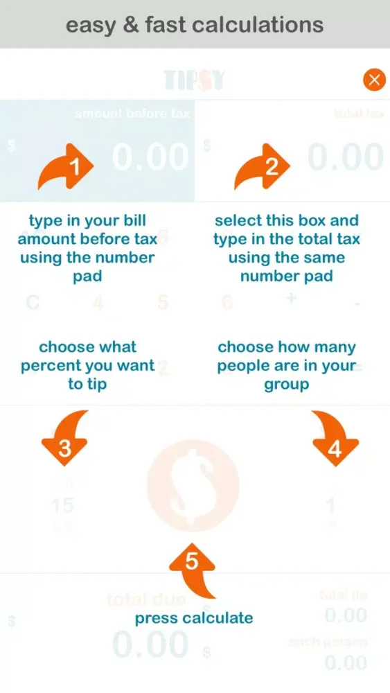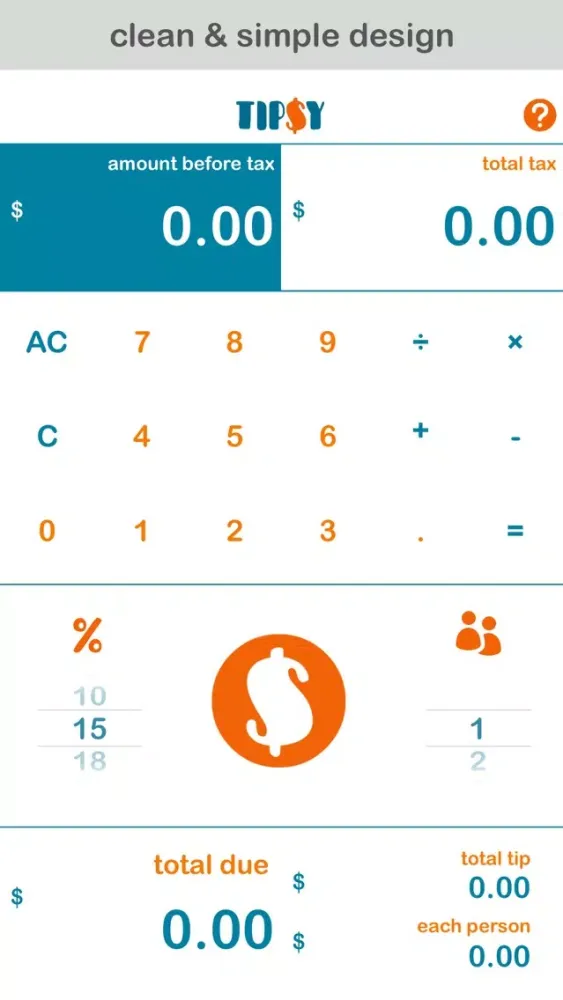 A clean and simple tip calculator that helps you quickly fill in the "tip" and "total" columns on your bill or check.