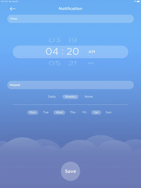 • Get alarm notifications any day, daily, or weekly.