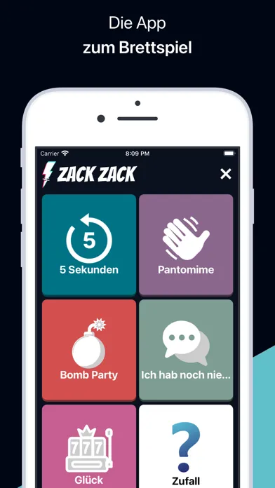 Zack Zack ist das ultimative Partyspiel mit Brettspiel & App für einen unvergesslichen Abend! Ihr würfelt und wer zuerst am Ziel ankommt hat verloren und bekommt die Höchststrafe! Auf dem Weg zum Ziel habt ihr eine riesige Vielfalt an Aufgaben, Regeln und App Klassikern wie der 5 Sekunden Regel, „Ich hab noch nie“, Bomb Party, Pantomime oder Scharade. Die App wird stets mit neuen Aufgaben erweitert und bietet nahezu unendlichen Spielspaß.