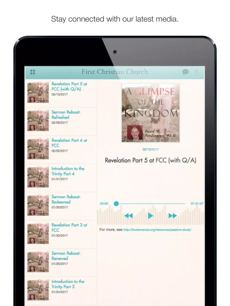 Connect and engage with the First Christian Lawrence app! You will be able to fill out prayer request cards, give, read the bible, and more!