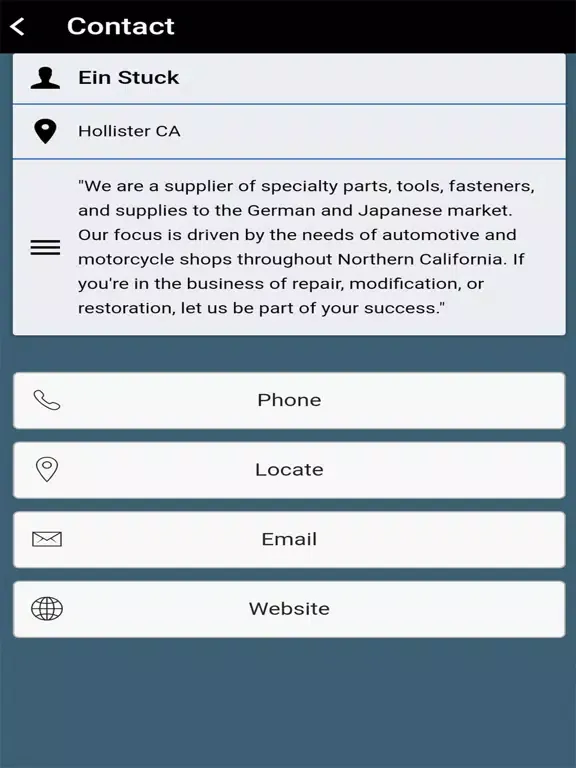 The Ein Stuck B2B App is a tool for the automotive industry to browse parts and submit orders in a simplified manner. It will also supply industry specific information and a community wall to share and interact. There will also be links to instructional videos on how to properly use our products and best practices. It has an inquiry section for parts recommendations. The App is for business to business only. Instructions for simple membership are within the non-member section of the App.