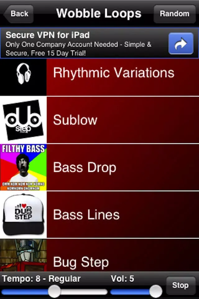Wobble loops the best percussive loops on the iPhone/iPad with features and a sound quality unparalleled to any generic beat machine.