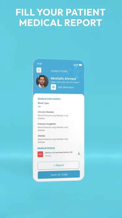 • Add your patient report to his profile