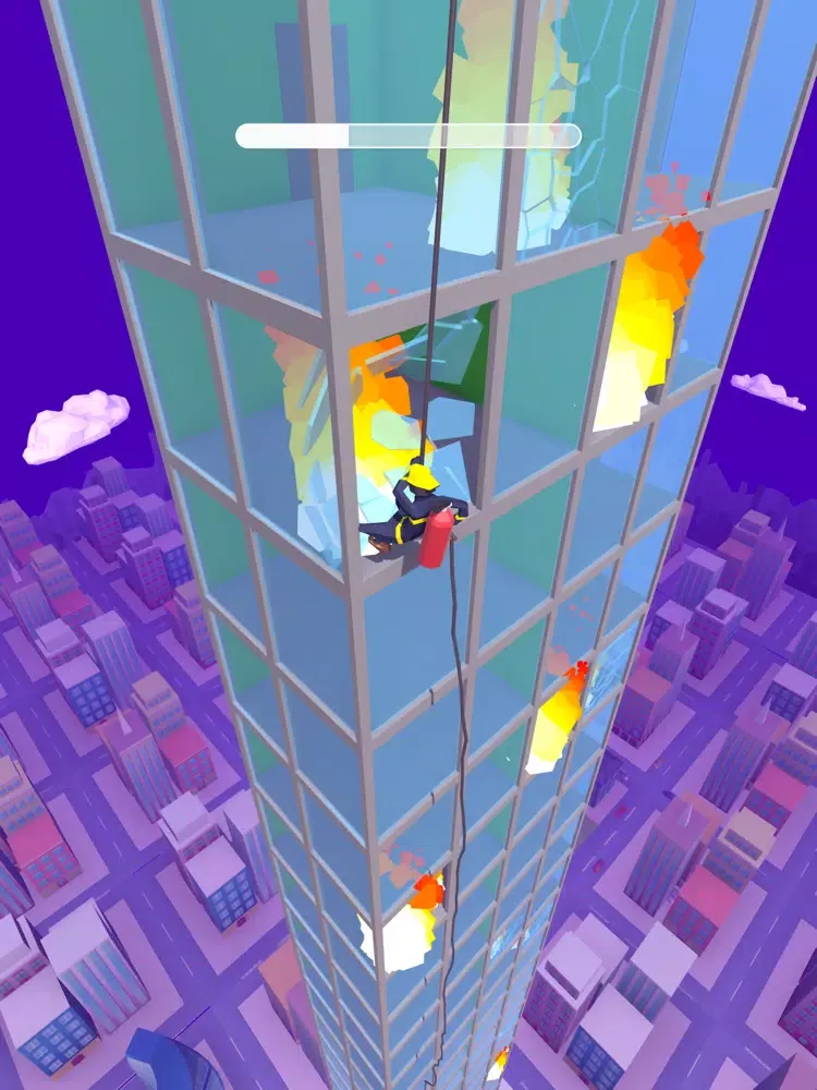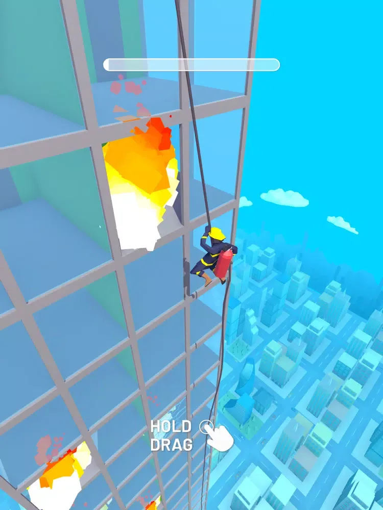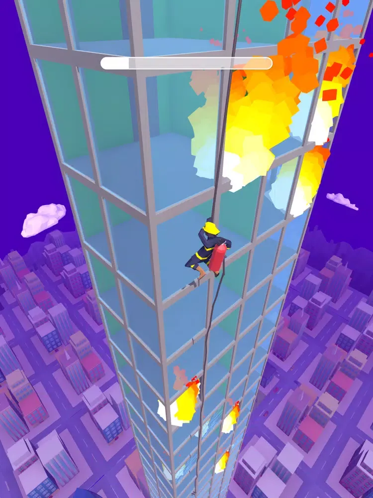 Control a firefighter, dodging the flames and risking his life to save those who are trapped on a burning building! Rappel your way down to reach the ones in need of help!