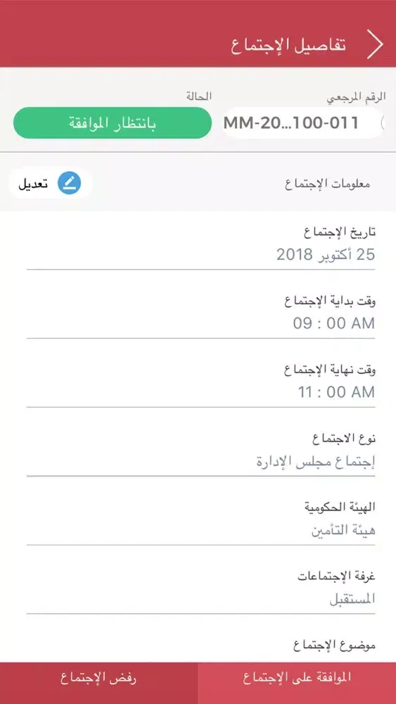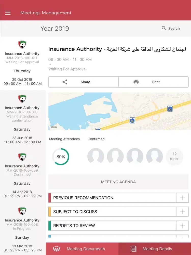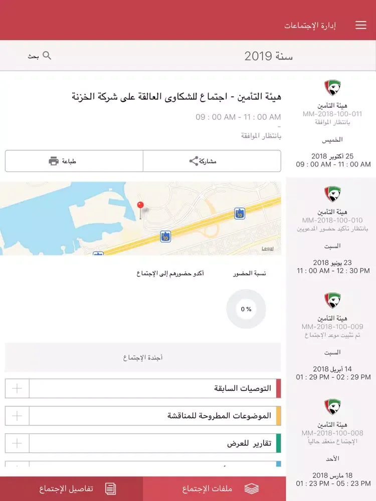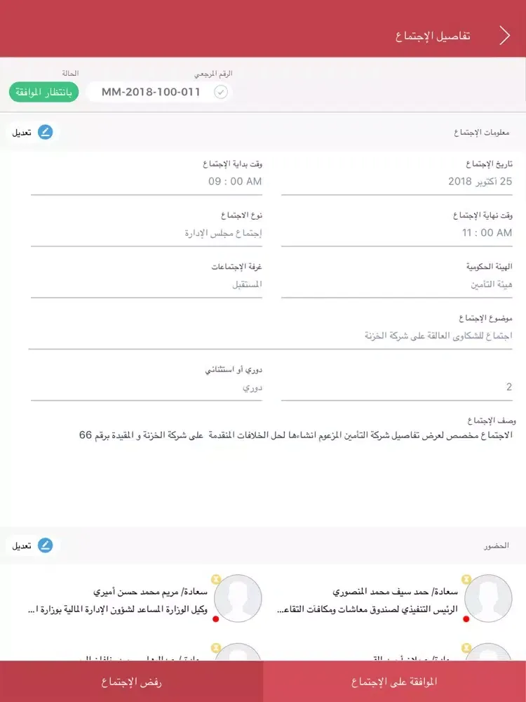 ظام يقوم بإدارة الاجتماعات مثل تنظيم اجتماعات مجلس الإدارة ، و الاجتماعات الداخلية بداية من أجندة الاجتماع حتى التوصيات ، حيث أنه يمكن المستخدم من تحضير الأجندة و إرسالها للمدعوين للاجتماع ، ثم يتم تسجيل الملاحظات و المواضيع التي تم مناقشتها خلال الاجتماع في النظام، و يمكن المستخدم من وضع التوصيات و مشاركتها مع المدعوين.