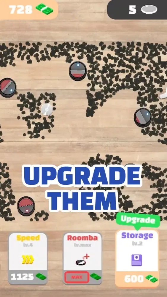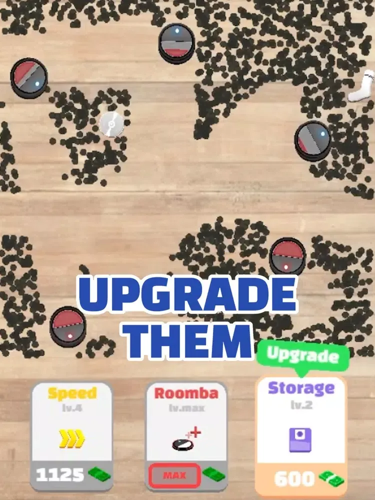 Unleash the power of roomba magic! Dropped a chip? Roomba’s got it! Make floors clean again by deploying multiple roombas and watch them turn into lean mean cleaning machines! You’ve never seen an Idle game like this, so drop what you’re doing, it’s time to take out the trash!