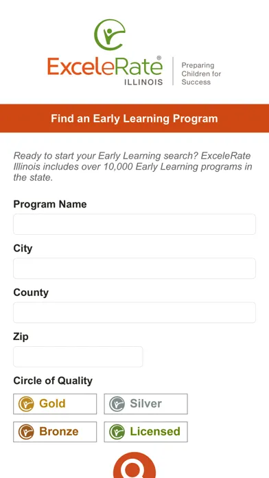 Are you ready to start your search for an early care and education program for your child? ExceleRate Illinois includes over 10,000 early care and education programs in Illinois - child care centers, family child care providers, school-based preschool, and Head Start programs. Programs that have a achieved a Circle of Quality (Licensed, Bronze, Silver, and Gold) are clearly noted so that you find programs that meet your needs and understand that level of quality they have demonstrated through participation in ExceleRate.