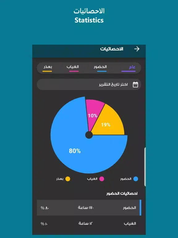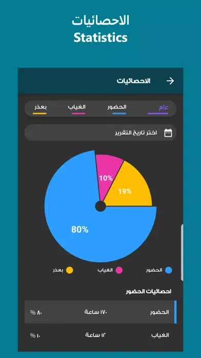 تطبيق تسجيل الحضور والانصراف للموظفين, كما يمكن من خلاله التقديم على اجازة واضافة التقارير، كما ان التطبيق يستخدم تحديثات الموقع في الخلفية عندما تقوم بتسجيل الحضور ويتم ايقاف التتبع في الخلفية عند تسجيل الانصراف لضمان متابعة الموظف في مكان العمل