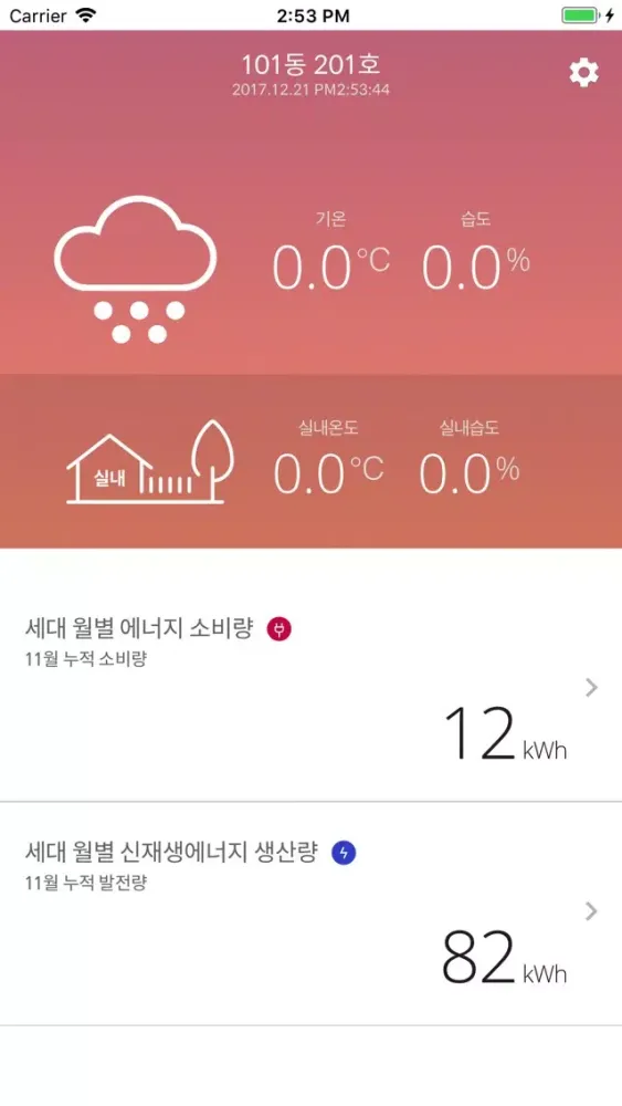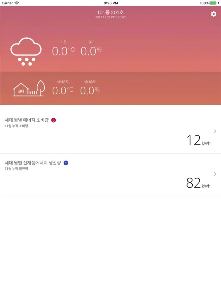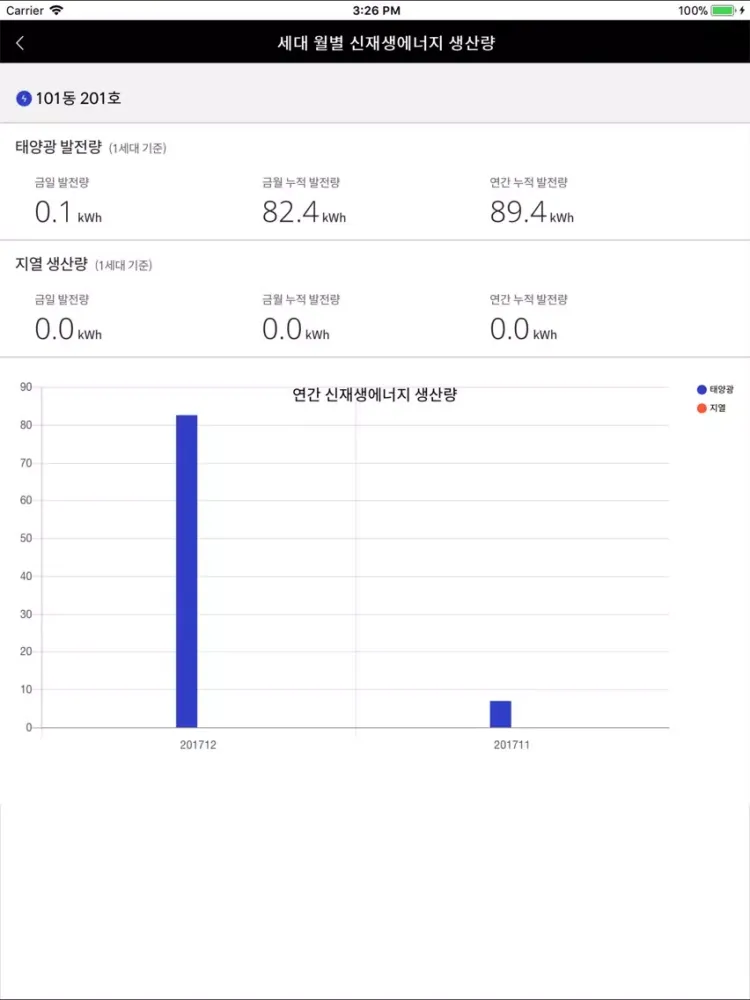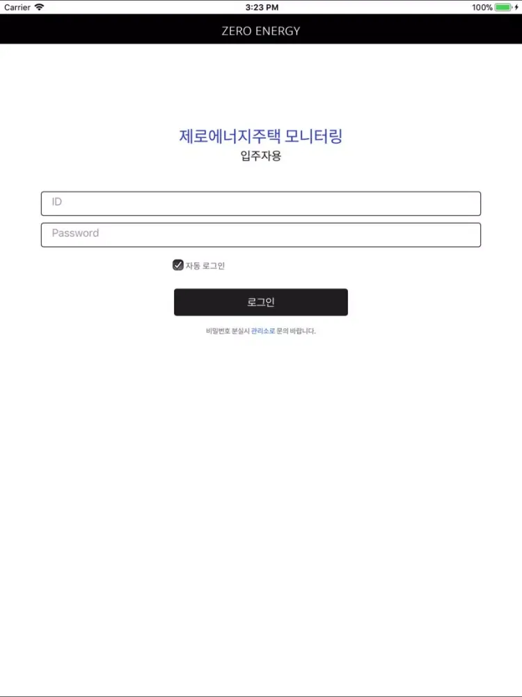 이지하우스에 거주하는 115세대의 입주자들을 위해 제작 되었으며, 각 세대의 입주자들만 접속할 수 있습니다. 에플리케이션에서는 실내외 온습도 정보와 5대에너지 소비량, 신재생 에너지 생산량의 모니터링 정보를 제공하고 있습니다.