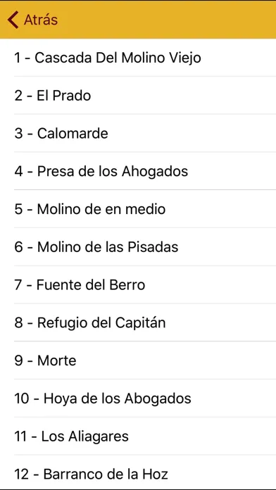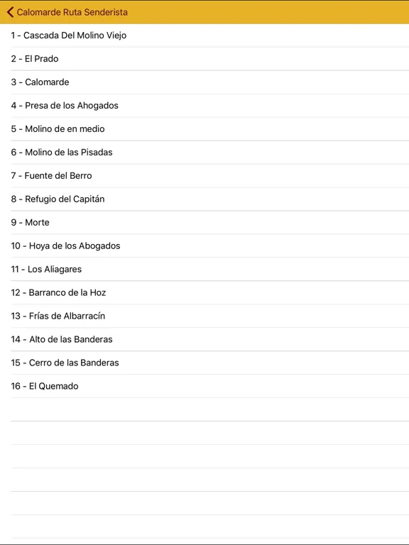 También podemos acceder a la información mediante una lista de los puntos existentes, sin necesidad de estar localizados en las rutas.