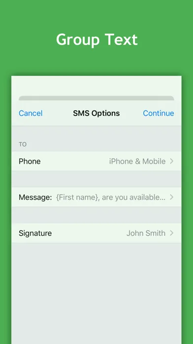 Canned Text helps you to send Canned Text and Email to groups of contacts using smart templates. Send group text and email can never be easier.
