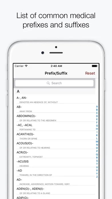 MedWords provides definitions and synonyms, and other information on over 38,000 entries. PLUS there is a list of common medical prefixes and suffixes