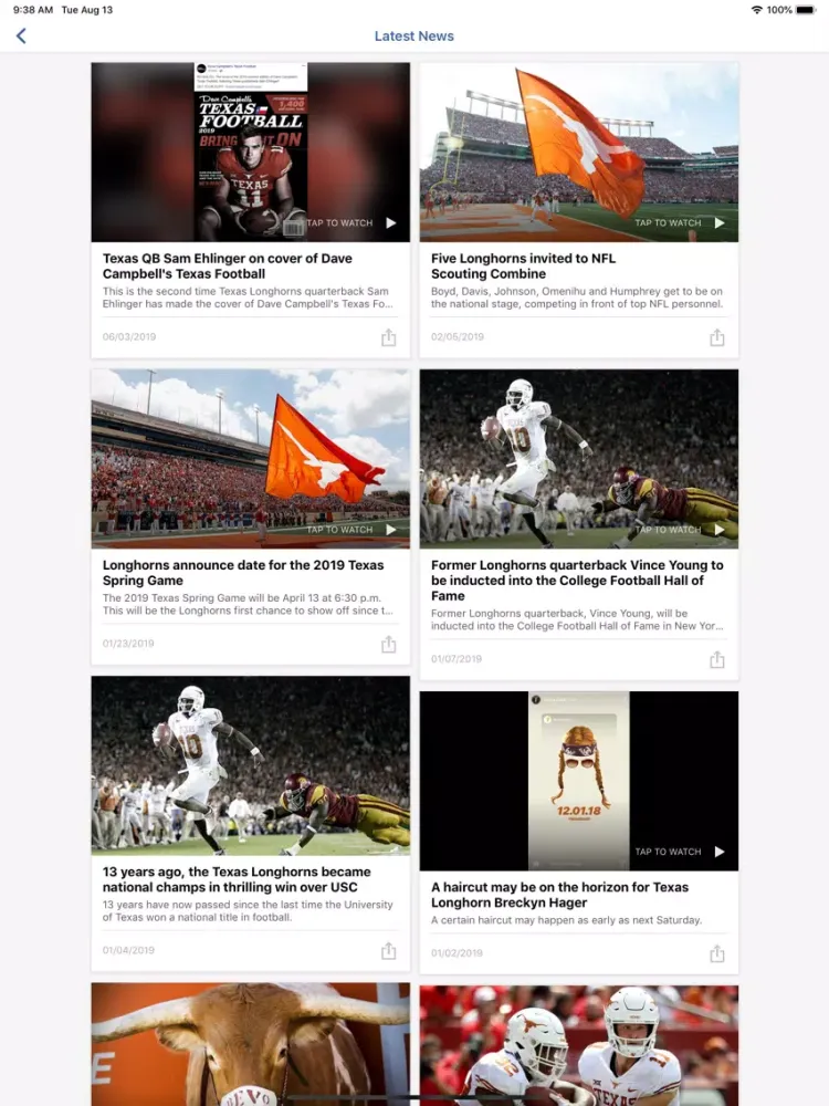 The perfect mobile app for any Texas Longhorn Tailgater! Latest UT Longhorn news and information, live scores from around the Big 12, and expert commentary and reports from those who know UT football the best!