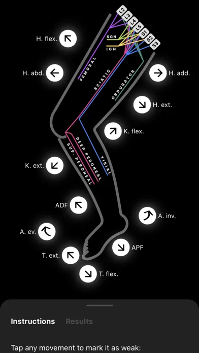 Localize focal peripheral nerve lesions in the lower limb quickly. Mark movements as weak, and see the pathway of potentially causative lesions highlighted on our interactive anatomic map. See suggestions for which movement to test, as the most efficient next step in establishing a diagnosis.