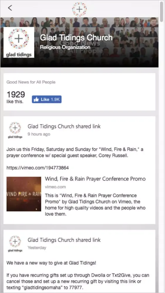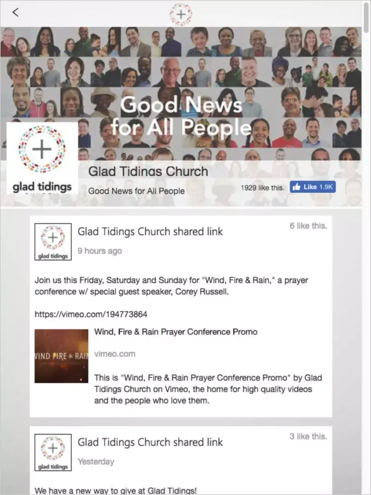 Connect and engage with the Glad Tidings Church app! You will be able to fill out prayer request cards, give, get a map to the church, and more!