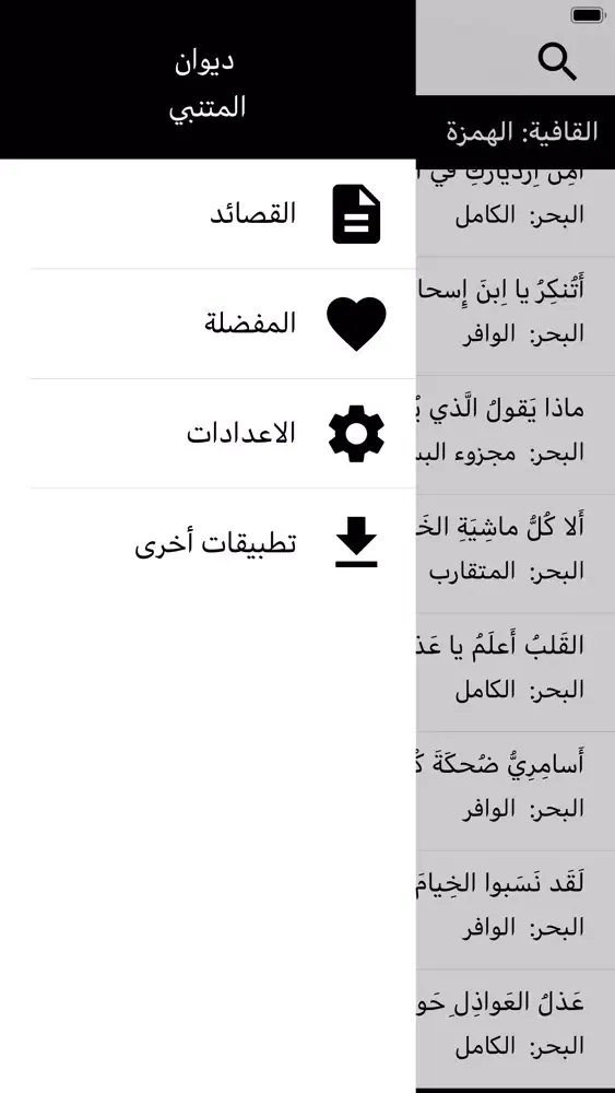 فهذا ثاني برنامج من سلسلة برامج الشعر العربي. و هو عبارة عن برنامج يحوي ديوان الشاعر الكبير أبي الطيب المتنبي، نضعه بين أيديكم مرتبا بطريقة يسهل معها قراءة القصائد و البحث عن كلمات في الديوان بالاضافة الى امكانية نسخ بيت أو مجموعة أبيات من الديوان .