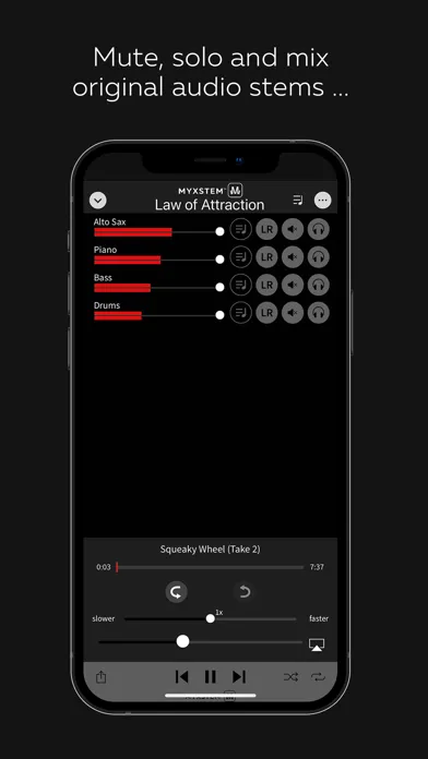 ‘Mike Casey - Law of Attraction’ is a MYXSTEM app release, allowing users to completely control the listening experience. The app features mute, solo, pan and fade for each stem along with tempo control, looping and lyrics. By adjusting the levels of each instrument (stem), musicians can build the perfect mix to play- and sing-along. All album-as-an-app releases from MYXSTEM deliver interactive audio to create an immersive musical experience.