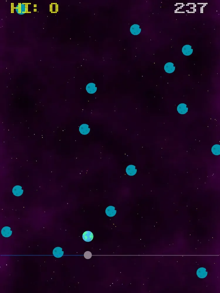 As the Earth travels merrily through space, an onslaught of meteors and asteroids approaches! Slide left and right to steer the planet through the mass of fast-moving space debris, and try to keep Earth off the track toward a fatal collision!