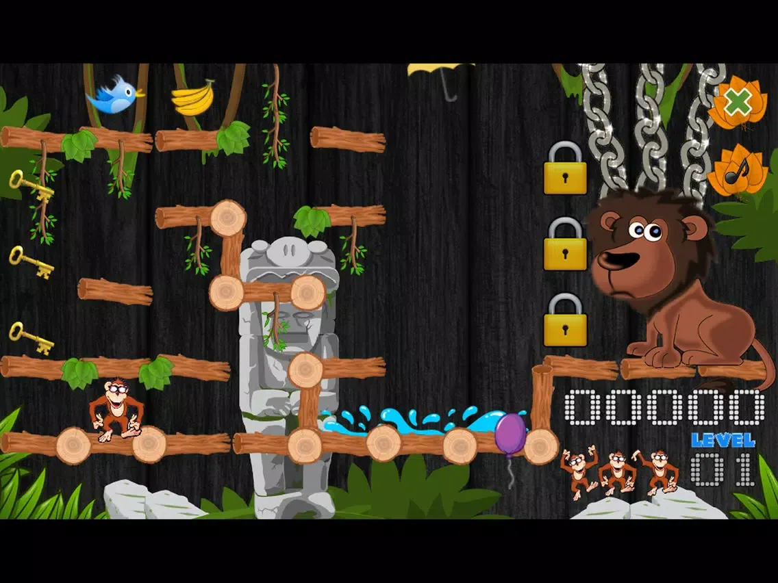You take on the role of Kong, facing many challenges in your attempt to free the chained lion.