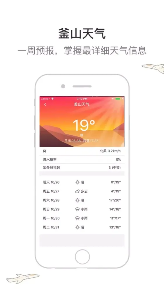 1.天气信息,釜山一周天气早知道;出行地图,实时知道自己身在何方;汇率计算,多少票票一算便知……