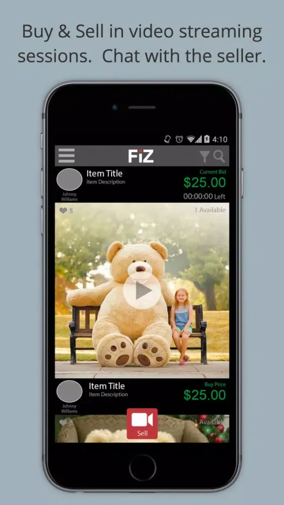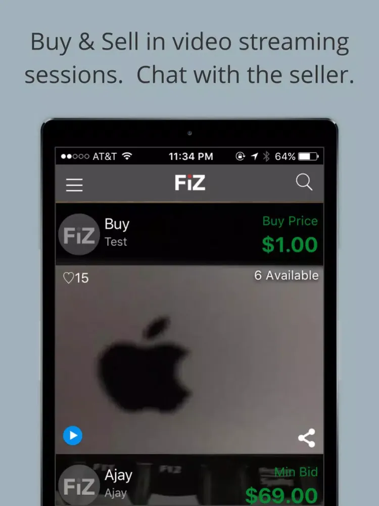 Fiz Fuz is a social e-commerce experience. Buy and sell products live in a video streaming session, or with a recorded video. Chat with the seller, respond to potential buyers, meet face to face with people who want to buy/sell products and services. No need to wait for email responses, no need to figure out what the product really looks like. It's here in front of you being demonstrated live. Best online buying experience.