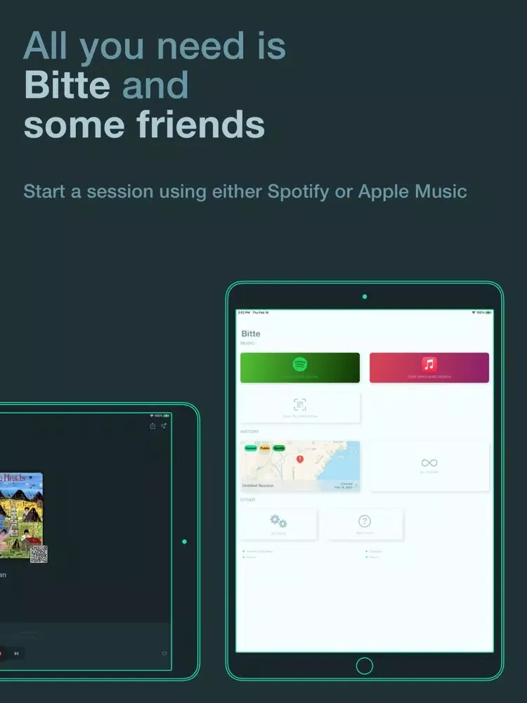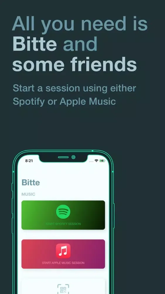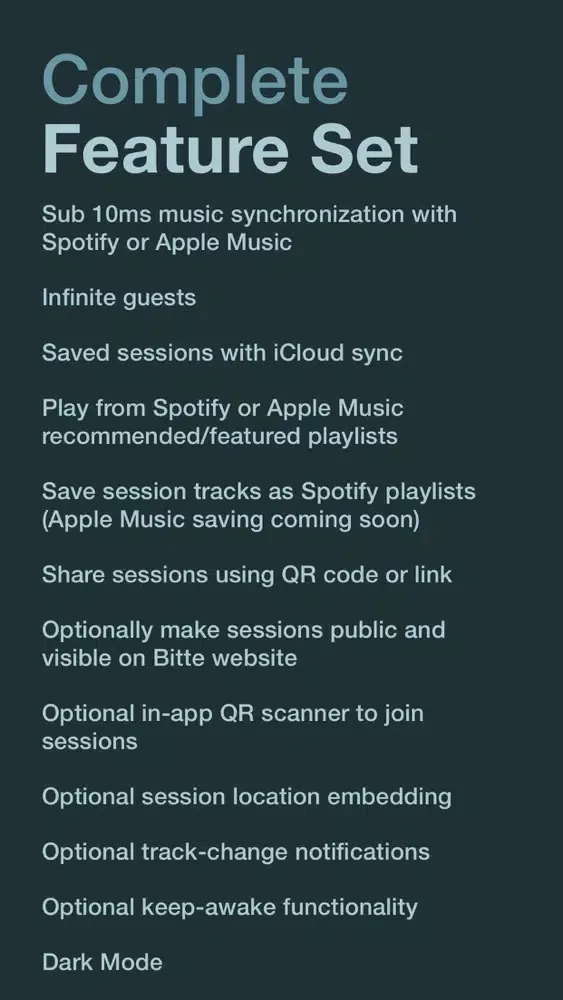 Bitte lets you start a session using Spotify or Apple Music and anybody who joins will have their music synchronized with yours to the millisecond.