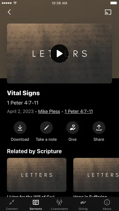This app will help you stay connected with the day-to-day life of our church. With this app you can: view the church calendar; watch or listen to past messages; stay up to date with push notifications; share your favorite messages via Twitter, Facebook, or email; download messages for offline listening; give online; and access messaging for Sunday School classes, prayer requests, ministries, etc.