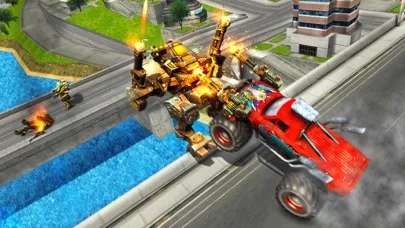 Are you ready to fight in heroes battles as a monster legend? Welcome to modern futuristic robot battle survival game. Transform your monster cars into hero robots to save the city from the enemy robots. Be the monster legend to become last hero of the last battle. What would you do if strange robots attack the monster city with the backup of dangerous criminals and mafia? Will you fight back as monster hero in the city battle to save humanity? If yes, it’s your time to show your amazing shooting, boxing, firing and attacking skills by transforming your monster vehicle to giant mech robot. You are equipped with weaponise monster trucks which can be transformed into fighting steel robots by pressing transformation robot button.
