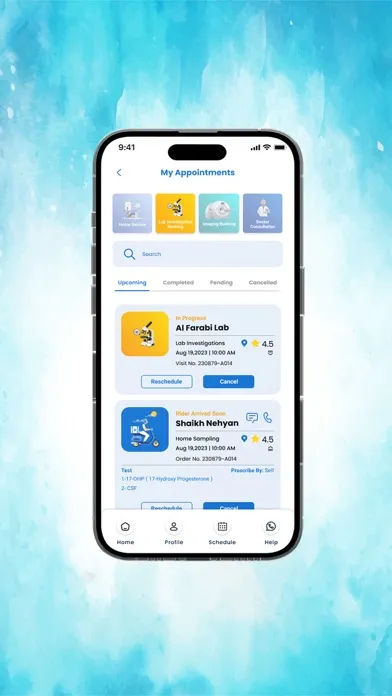 Appointments: This act as a reminder for patient’s all incoming appointments of Dr Consultation, Diagnostics and Investigations along with history of appointments