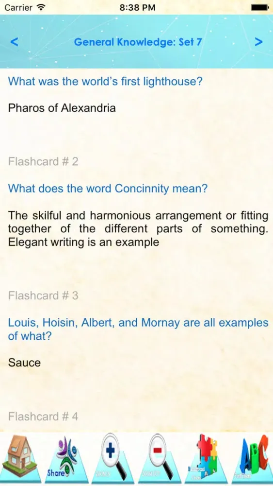 This app is a combination of sets, containing practice questions, study cards, terms & concepts for self learning & exam preparation on different topics.