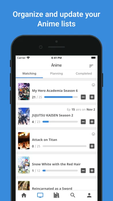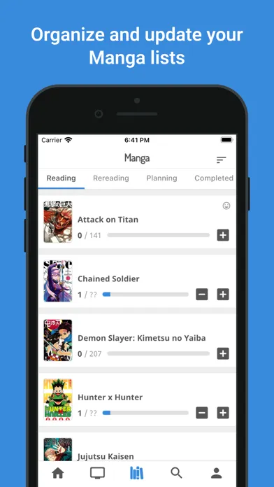 - Organize and update your Anime and Manga lists
