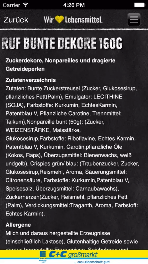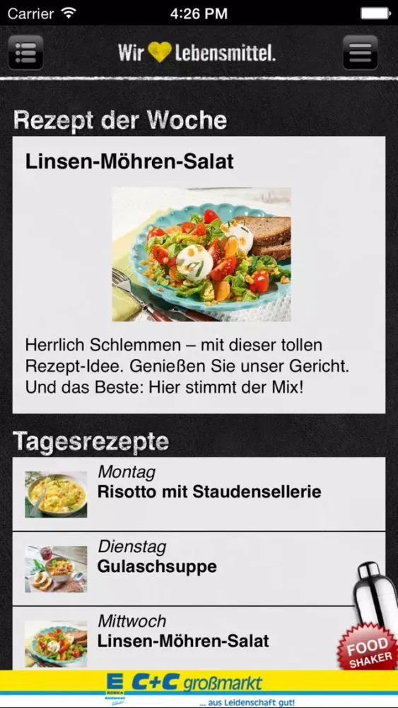 Sie finden einzigartige Features auf unserer C +C APP, wie den FOOD-Shaker, einen QR-Scanner für Rezepte, LMIV-Datensuche etc.