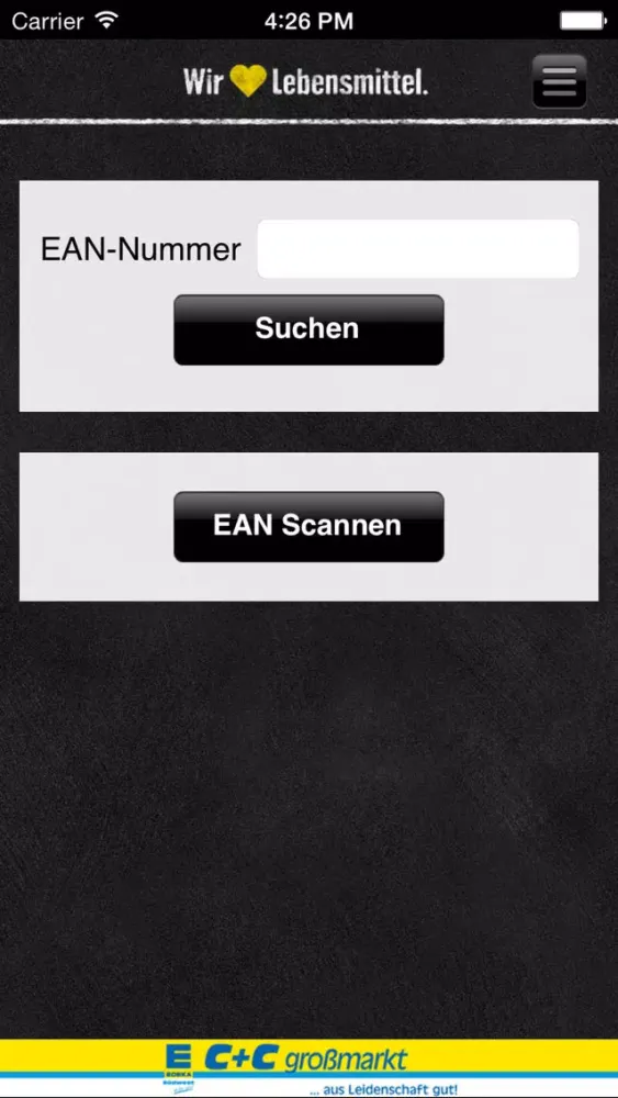 * Datensuche durch EAN-Nummer oder EAN-Scanner gemäß der Lebensmittelinformationsverordnung (LMIV)