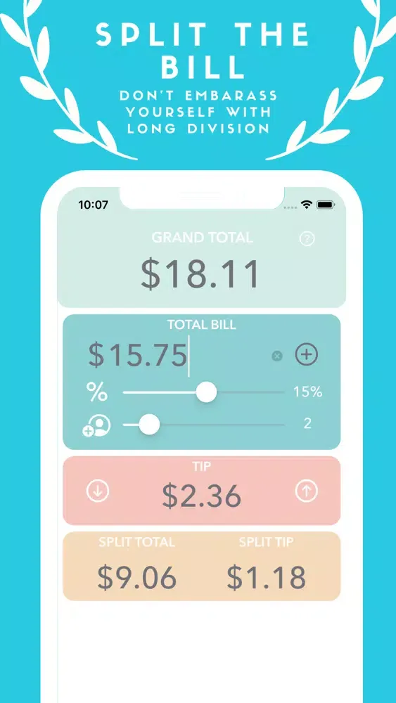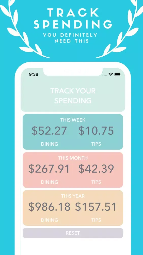 • We track the amount you spend on tips and dining out. Well, we don't track it. Only you have access to it so your hangry urges won't be exposed. After inputting your bill and landing on a tip, click once to save it and you'll be able to view your spending on a weekly, monthly or annual basis!