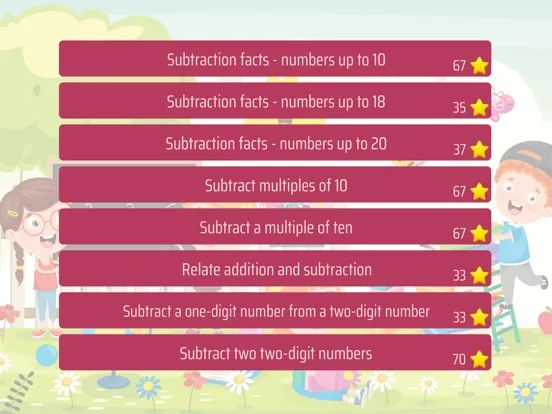 With First grade Math - Subtraction you can practice and improve the following math skills: