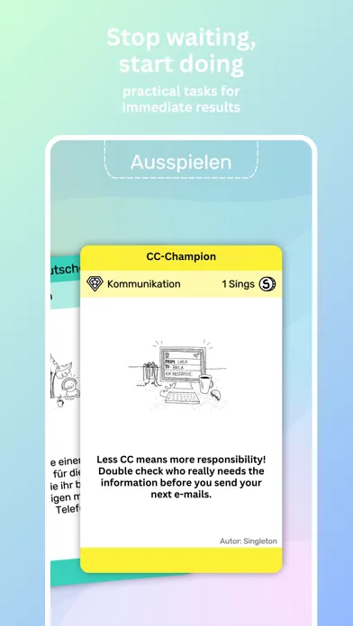 Don't wait any longer! Start with Singleton Quest now and watch your team evolve and surpass their limits. Revolutionize personal development, cultural change, and value realization in your company. Contact us for a free consultation and discover how Singleton Quest can support your goals. Immerse yourself in our demo decks on topics such as Onboarding, New Work, and Resilience, and experience the transformative power of Singleton Quest firsthand.