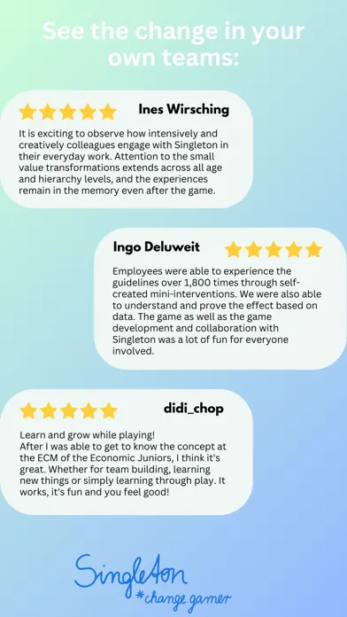 Are you ready to embark on a new era of team empowerment and organizational transformation? Singleton Quest, an innovative app, merges micro-interventions with gamification to boost personal growth, cultural change, and the realization of company values. It's the perfect tool to energize your team and elevate your organization to the next level.
