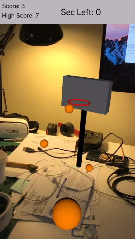 Simply point at any flat surface and behold as the race to make as many baskets as possible begins. Swipe to shoot!