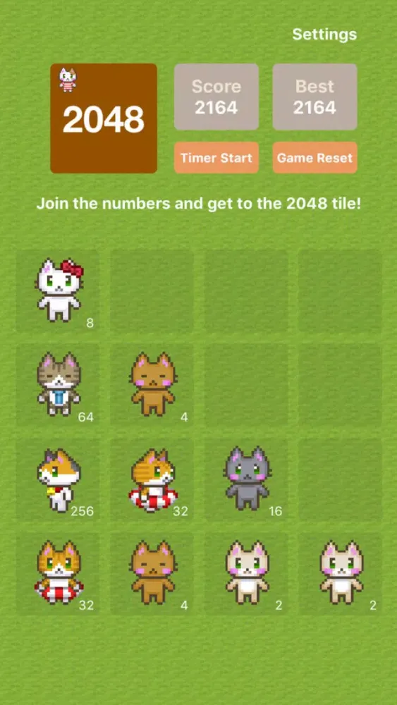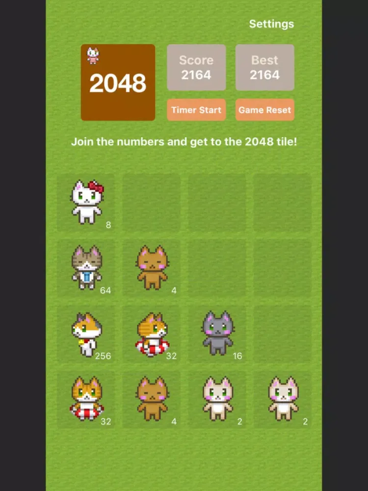 2048 with Timer Cats version/Cute puzzle game
