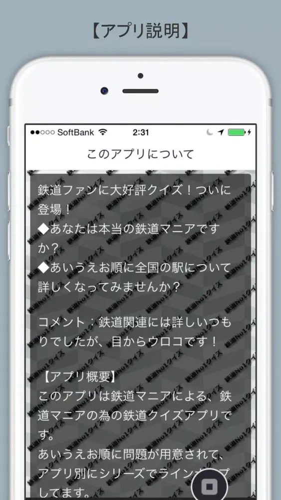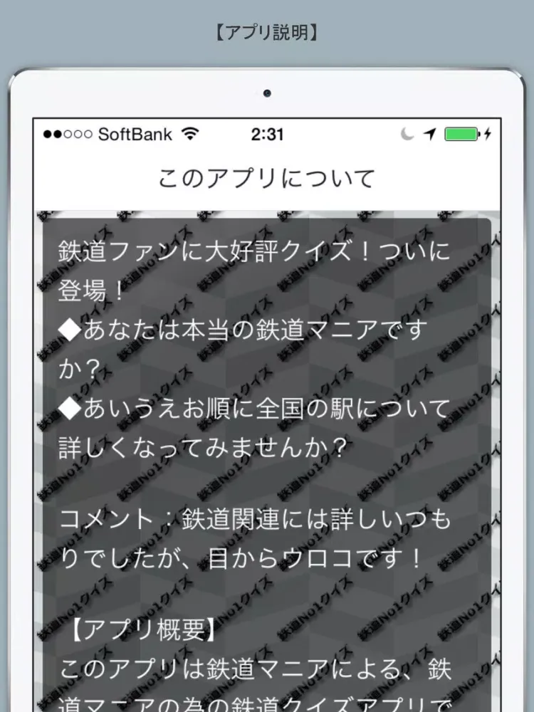 このアプリは鉄道マニアによる、鉄道マニアの為の鉄道クイズアプリです。