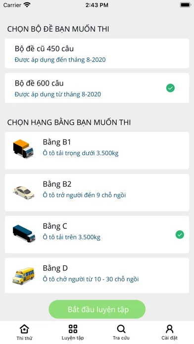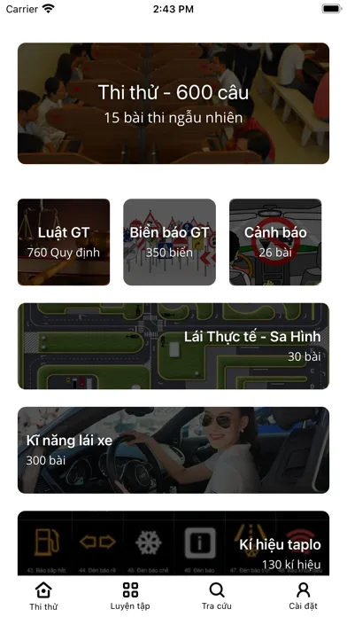 Ứng dụng tổng hợp đầy đủ tất cả câu hỏi lý thuyết trong bộ đề mới, giúp bạn ôn thi sát hạch lái xe các hạng bằng lái B1/B2, bằng lái hạng C, D và E. Bạn sẽ được làm các đề thi thử tương tự như đề thi thực tế, giúp bạn ôn thi nhanh chóng và hiệu quả.