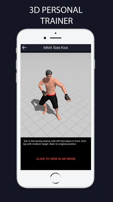 Includes exercises: Jab, Boxing cross, Boxing hook, MMA high kick, MMA roundhouse kick…. All exercises are detailed by video and animation 3D models