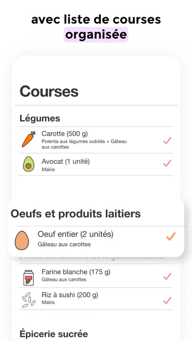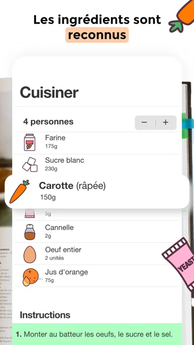 *Vos recettes s'équipent en plus d'outils hyper pratiques : quantités ajustables, conversion poids-volume, liste de courses organisée.