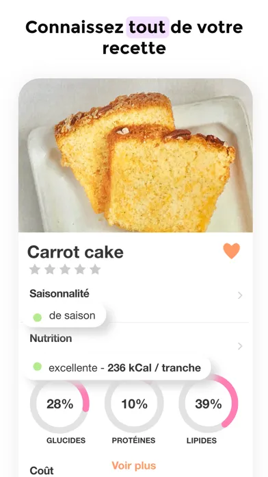 *Connaissez ainsi tout de vos recettes : nutrition complète, saison, coût ...