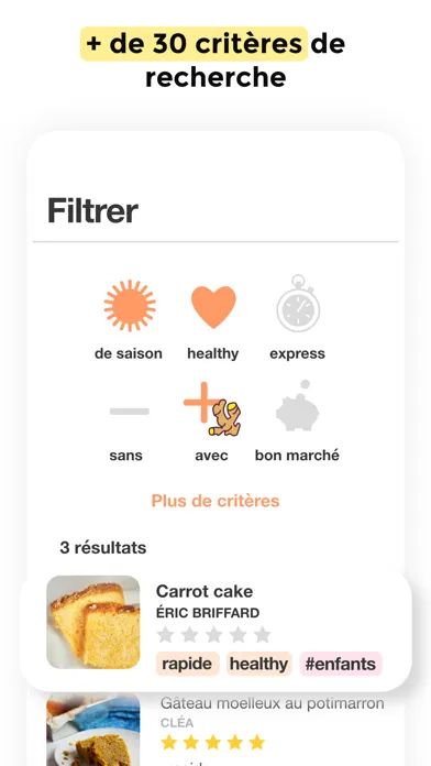 *Vous les retrouverez toujours au bon moment grâce à plus de 30 critères de recherche (saison, allergènes, avec ou sans tel ou tel ingrédient, temps, critères de nutrition, …).