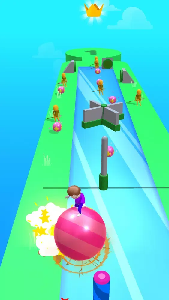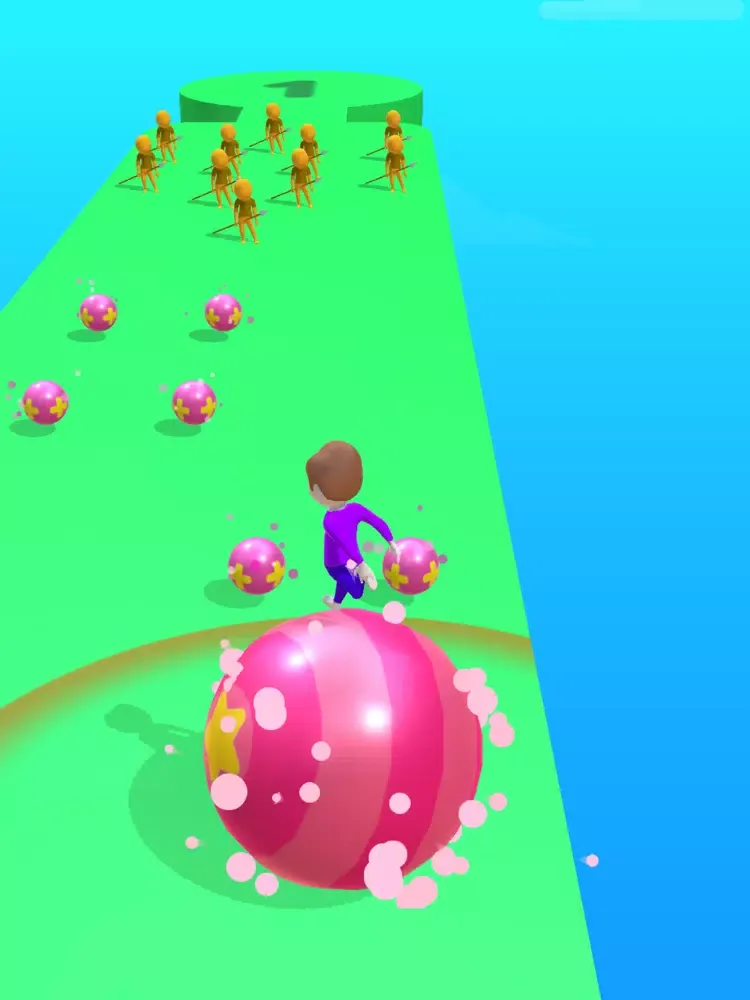 Roll the ball and squash the enemies. Watch out not to fall out off the platform.