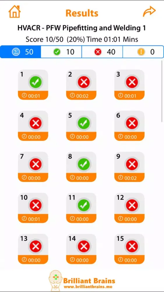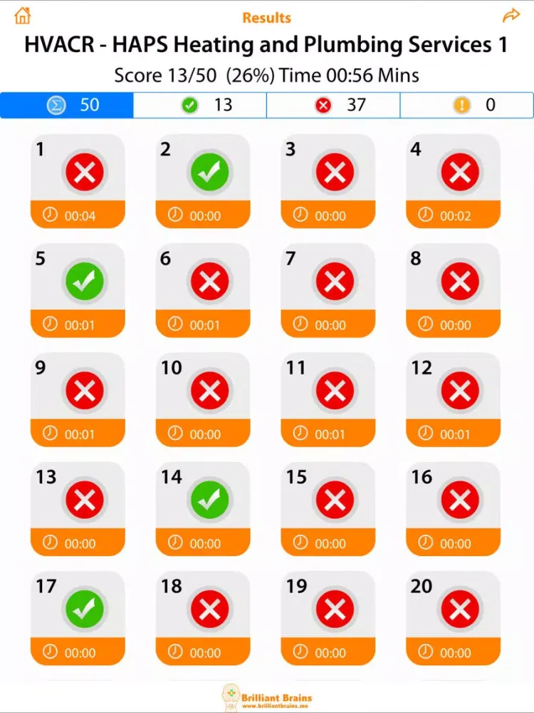 A summary of the practice test is presented at the end of each test. It shows you the time you took, the score, which questions you answered correctly and where you were wrong. And yes, you can E-MAIL the results.