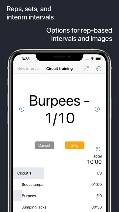 Create your intervals. Specify reps, sets, colours and sounds. Tailor it to your purpose and needs. Minimal design and easy to use. Options for rep-based intervals and images.