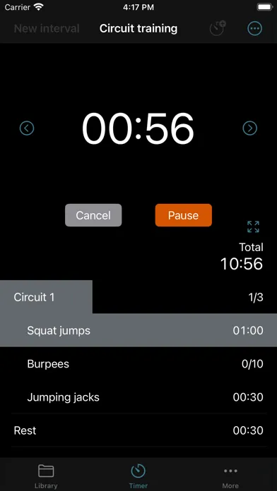 View progress with highlighted current intervals and reps completed.